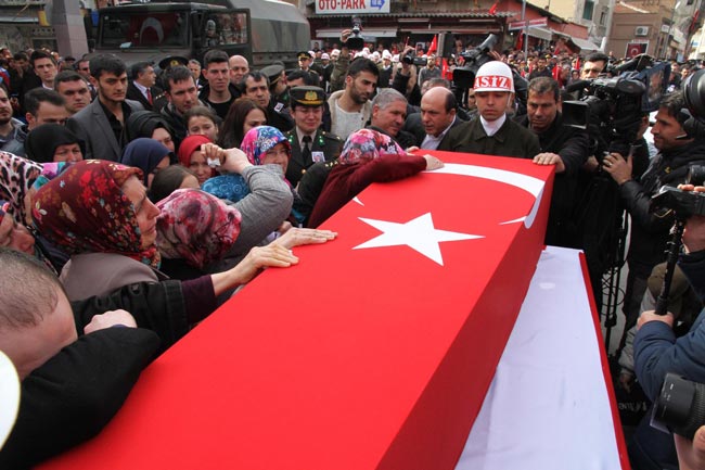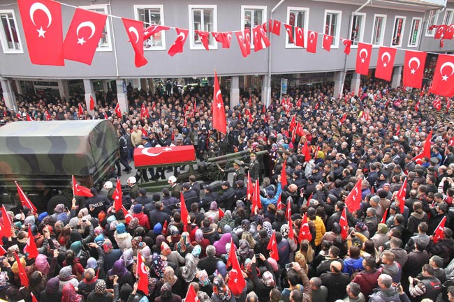 FOTO: DHA / Şehit cenazesine katılanlar hep bir ağızdan terörü lanetledi.