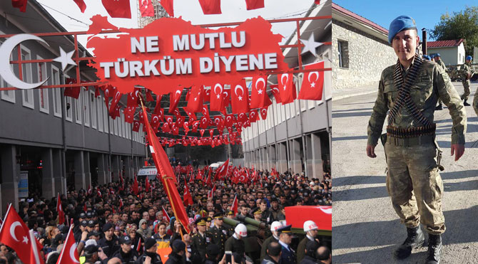 Cenaze töreninde 4 aylık eşi Hacer Talay’ın “Beni bırakıp nereye gidiyorsun” feryadı yürek dağlarken, şehit Uzman Çavuş Talay’ı uğurlayan yaklaşık 20 bin Balıkesirli, terör örgütüne lanet yağdırdı.